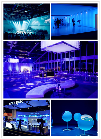 展會(huì)展臺(tái)的面積普遍比較小,一個(gè)專業(yè)的設(shè)計(jì)師會(huì)懂得巧妙的運(yùn)用燈光來(lái)改變狹小空間。例如將墻面用燈光打亮就會(huì)令空間顯得較為寬敞。對(duì)展臺(tái),特別是營(yíng)銷型展臺(tái),由燈光來(lái)改變展會(huì)的空間時(shí)常會(huì)帶來(lái)一些意想不到的效果。
