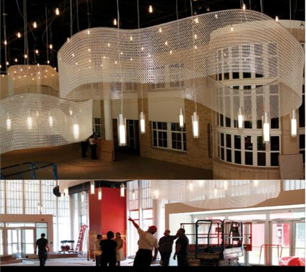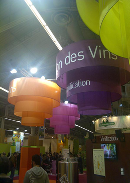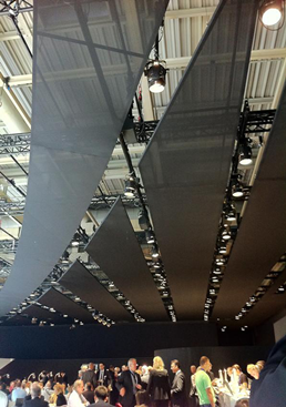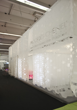 法國紙?jiān)诖笮统氛辜皶r(shí)尚商業(yè)展覽中的表現(xiàn)力無比卓著。法國紋理紙?jiān)跉W美車展、商業(yè)展臺(tái)等有運(yùn)用的很廣。法國紙?jiān)谏虡I(yè)空間裝飾及店面展示方面表現(xiàn)多元性及可塑性。如拉吊造型、懸吊造型、陳列氣氛裝飾、接待臺(tái)環(huán)境等都有應(yīng)用。