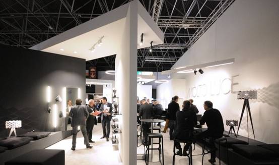 在增加空間感上,鏡子是個(gè)經(jīng)典的道具。它主要放置在兩個(gè)地方,第一是展示墻,展品后面放置鏡子,參觀者看展品時(shí)就會(huì)有放大的感覺,尤其是有狹窄過(guò)道的小展位。第二是天花板位置,配合白熾燈,可使展位通體透明,令人感到輕巧明快,既節(jié)省了燈光的使用和電費(fèi),還增加了空間感。